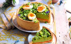 Torta con crema di piselli e uova barzotte: ricetta elegante per Pasquetta e picnic di primavera