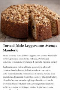 Torta di Mele Leggera con Avena e Mandorle: ricetta sana, soffice e senza farina raffinata Meta title Torta di Mele Leggera con Avena e Mandorle: ricetta sana e soffice Meta description Scopri come preparare una deliziosa torta di mele leggera con avena e mandorle, senza farina raffinata. Una ricetta soffice, genuina e perfetta per colazione […]