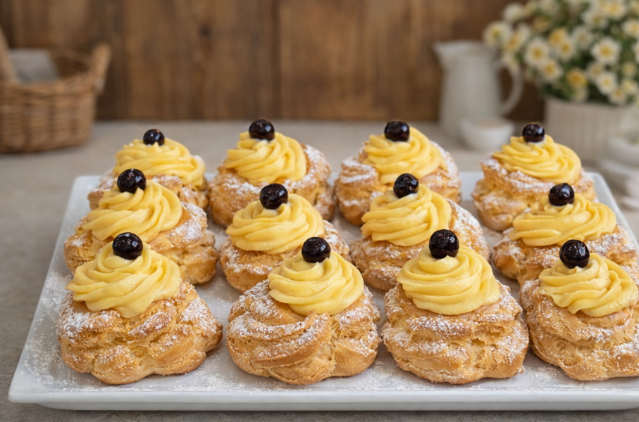 Le Zeppole di San Giuseppe rappresentano uno dei dolci più iconici della tradizione pasticcera italiana, in particolare della cucina napoletana. Questo dessert viene preparato ogni anno in occasione della Festa del Papà, il 19 marzo, ed è amato per la sua consistenza soffice, il profumo delicato e il gusto ricco grazie alla crema pasticcera e alle amarene.