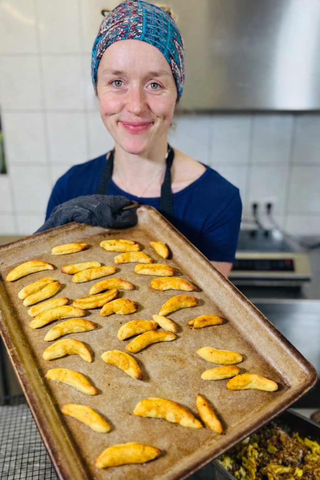 Während des Backens können sie einmal gewendet werden, damit sie gleichmäßig bräunen.