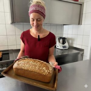 Nimm das Brot aus dem Ofen und lasse es vollständig abkühlen, bevor du es anschneidest. So bleibt die Konsistenz optimal.