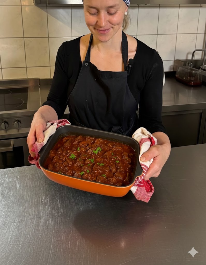 Ein gutes Rindergulasch zeichnet sich vor allem durch zwei Dinge aus: hochwertiges Fleisch und ausreichend Zeit beim Schmoren. Anders als bei schnellen Gerichten entsteht der Geschmack hier durch langsames Garen bei niedriger Temperatur. Dadurch wird das Fleisch besonders zart und nimmt die Aromen der Gewürze optimal auf.