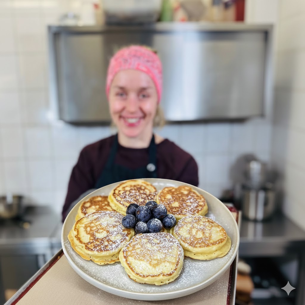 Quark-Taler sind kleine, dicke Pfannkuchen, die durch die Zugabe von Joghurt oder Quark besonders saftig und luftig werden. Im Vergleich zu klassischen Pancakes sind sie etwas kompakter, aber dennoch weich und zart im Inneren. Sie werden in der Pfanne ausgebacken und meist warm serviert.