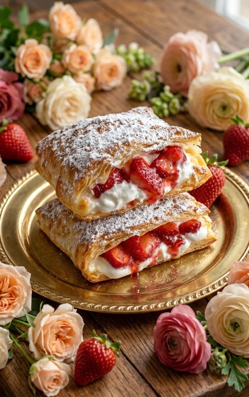 Fagottini di Pasta Sfoglia alla Fragola e Crema